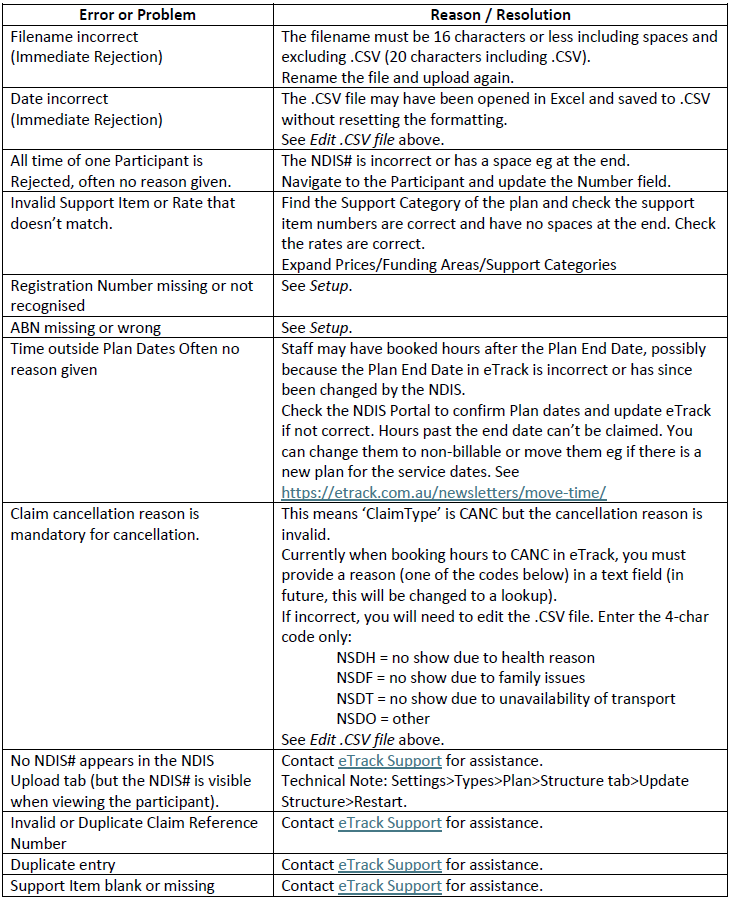 The NDIS stipulate a limit of 16 characters for the .CSV filename. The filename is generated by eTrack in the format: